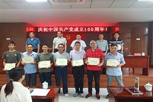 6月28日下午,我公司黨支部舉辦慶祝共產(chǎn)黨成立100周年活動(dòng)。公司邀請(qǐng)了徽州區(qū)應(yīng)急管理局黨組書(shū)記、局長(zhǎng)吳誠(chéng)志講黨史,公司黨建指導(dǎo)員范秀明講述黨員在公司經(jīng)濟(jì)發(fā)展中的作用、城東工業(yè)園黨建指導(dǎo)站副組長(zhǎng)方利榮作黨建工作指導(dǎo)。最后黨支部書(shū)記馬明海給公司7名黨員模范標(biāo)兵頒發(fā)證書(shū),號(hào)召公司所有黨員、職工要向黨員模范標(biāo)兵學(xué)習(xí),愛(ài)崗敬業(yè)、努力創(chuàng)新,實(shí)現(xiàn)公司質(zhì)量發(fā)展。